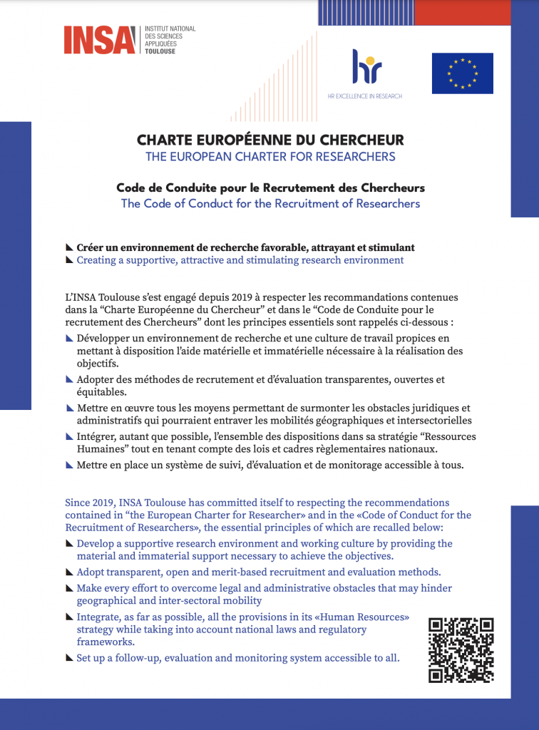 Vie à TBI Charte européenne du chercheur | Label HR Excellence In Research Hebdo n°115 – Du 30 septembre au 6 octobre 2024 Dans le cadre de la démarche HRS4R (Human resources strategy for researchers), voici la charte européenne du chercheur Plus d’informations sur le label HR Excellence In research : https://www.insa-toulouse.fr/rejoindre-les-equipes/#label-hr