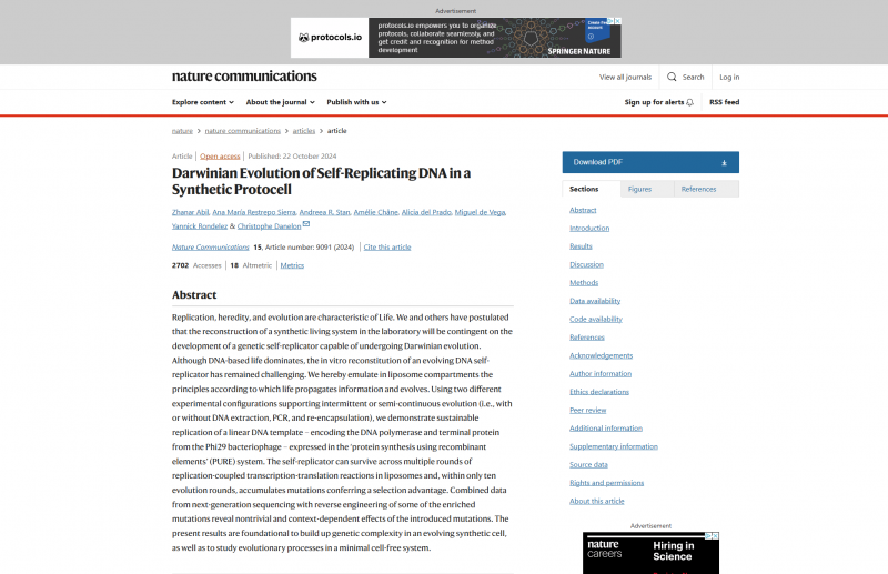 Abil, Z., Restrepo Sierra, A.M., Stan, A.R. et al. Darwinian Evolution of Self-Replicating DNA in a Synthetic Protocell. Nat Commun 15, 9091 (2024). https://doi.org/10.1038/s41467-024-53226-0