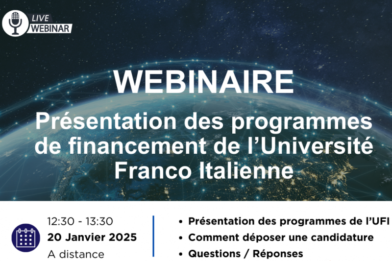 Deux webinaires seront organisés afin de présenter les dispositifs de financement de l’UFI et apporter les informations nécessaires au dépôt de candidature :