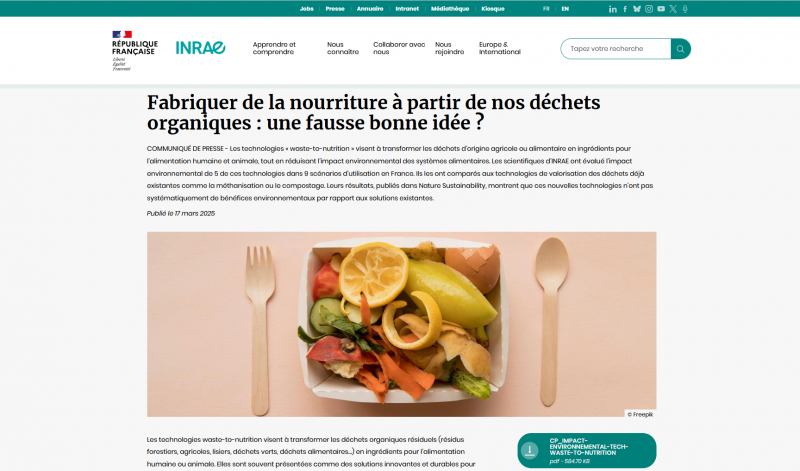 Javourez U. et al.(2025). Environmental mitigation potential of waste-to-nutrition pathways. Nature Sustainability. DOI : 10.1038/s41893-025-01521-z