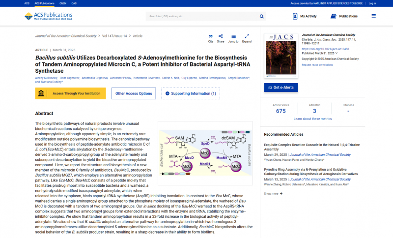 Bacillus subtilis Utilizes Decarboxylated S-Adenosylmethionine for the Biosynthesis of Tandem Aminopropylated Microcin C, a Potent Inhibitor of Bacterial Aspartyl-tRNA Synthetase