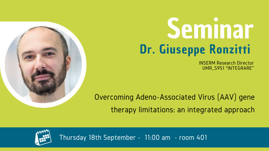 Dr. Giuseppe Ronzitti leads a team of over 30 members—including university professors, tenured researchers, postdocs, PhD students, and technicians—focused on developing AAV gene therapy strategies for rare genetic diseases. Since 2018, he has headed the Immunology and Liver Gene Transfer (IMF) team at Genethon and, since 2019, serves as a tenured INSERM Research Director affiliated with UMR_S951 “INTEGRARE.”
