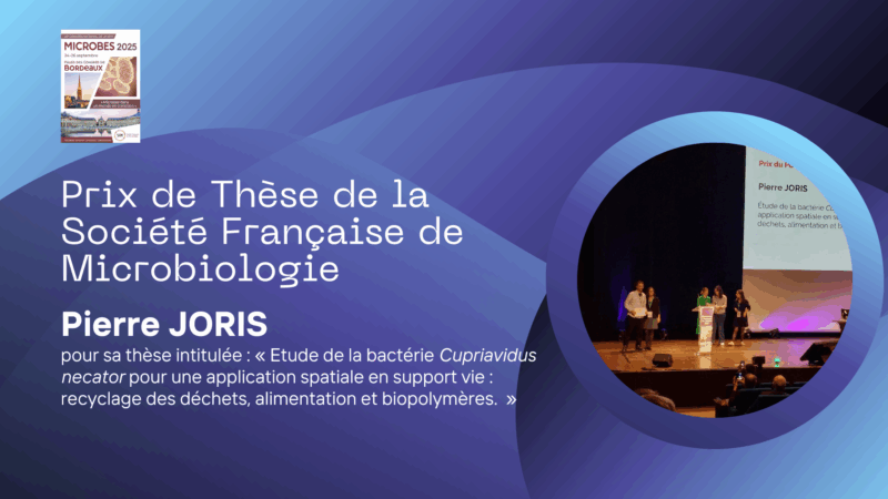 Félicitations à Pierre JORIS qui a remporté la semaine dernière au cours du Congres Annuel de la Société Française de Microbiologie, “le Prix de Thèse de la Société Française de Microbiologie – Prix du Public” !