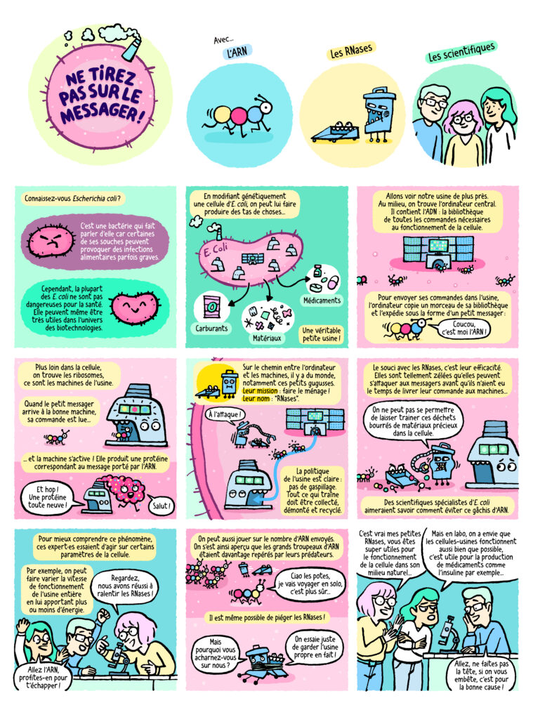 Parce qu’un dessin vaut parfois mieux qu’un long discours, découvrez en BD le projet de recherche RIB-ECO visant à optimiser l’efficacité énergétique des cellules pour des applications en biotechnologie, coordonné par Muriel Cocaign-Bousquet, chercheuse INRAE au laboratoire Toulouse biotechnology institute (TBI) du centre INRAE Occitanie-Toulouse.