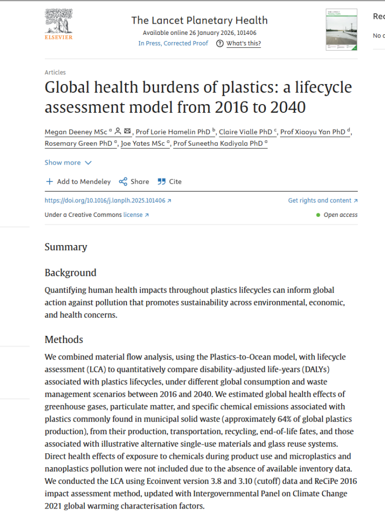 Global health burdens of plastics: a lifecycle assessment model from 2016 to 2040,