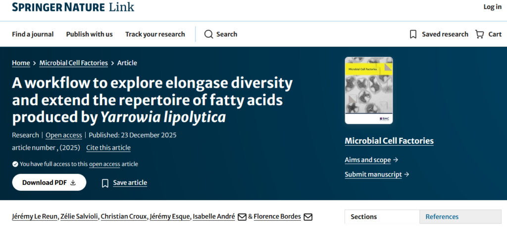 Le Reun, J., Salvioli, Z., Croux, C. et al. A workflow to explore elongase diversity and extend the repertoire of fatty acids produced by Yarrowia lipolytica. Microb Cell Fact 25, 18 (2026). https://doi.org/10.1186/s12934-025-02890-y
