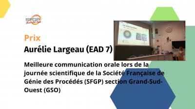 Félicitations à Aurélie Largeau (EAD7) qui remporte un des deux prix de la meilleure communication orale lors de la journée…