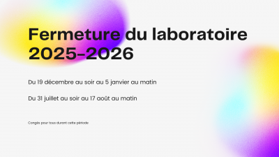 Bonjour à toutes et à tous, Nous vous rappelons que le laboratoire sera fermé du jeudi 31 juillet au soir au…
